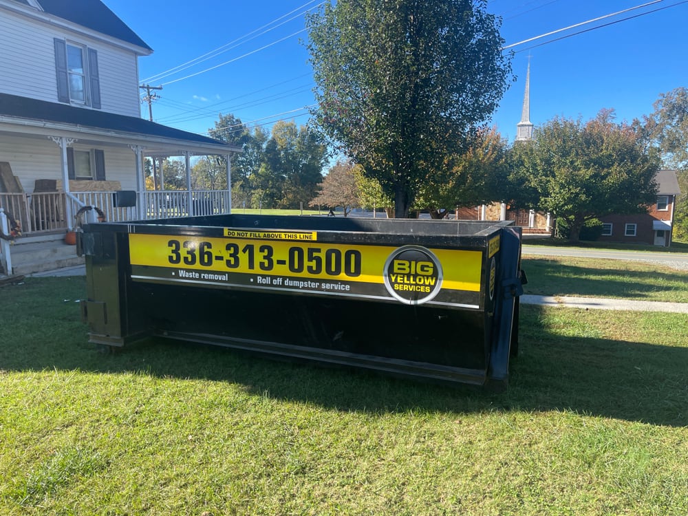 Our Burlington flat-rate pricing starts at $325.00 for a 12-yard dumpster. Rates include delivery, pickup, and a specific weight allowance. For the most accurate quote based on your project location in Alamance County, please call our HQ at 336-313-0500.